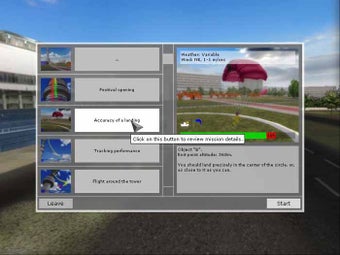 Escolha o tipo de pára-quedas e o tipo de salto. Depois disso, a partida está em suas mãos. Salte, abra o pára-quedas e tome o controle para aterrar são e salvo. As perspectivas usadas e a riqueza de detalhes nas imagens tornam o jogo ainda tão real que até passa sensação de vertigem por uns instantes.